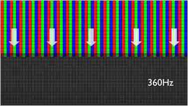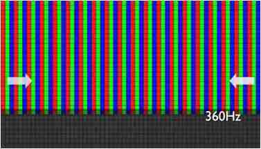 传统液晶驱动是从左到右单向进行,,在画面更新速度愈来越愈快的情况下,,位于驱动线路末端的右下角区域,,,,画素的闸极来不及在短时间内获得足够电压,,,,无法显示出正确的颜色资讯。。。 |